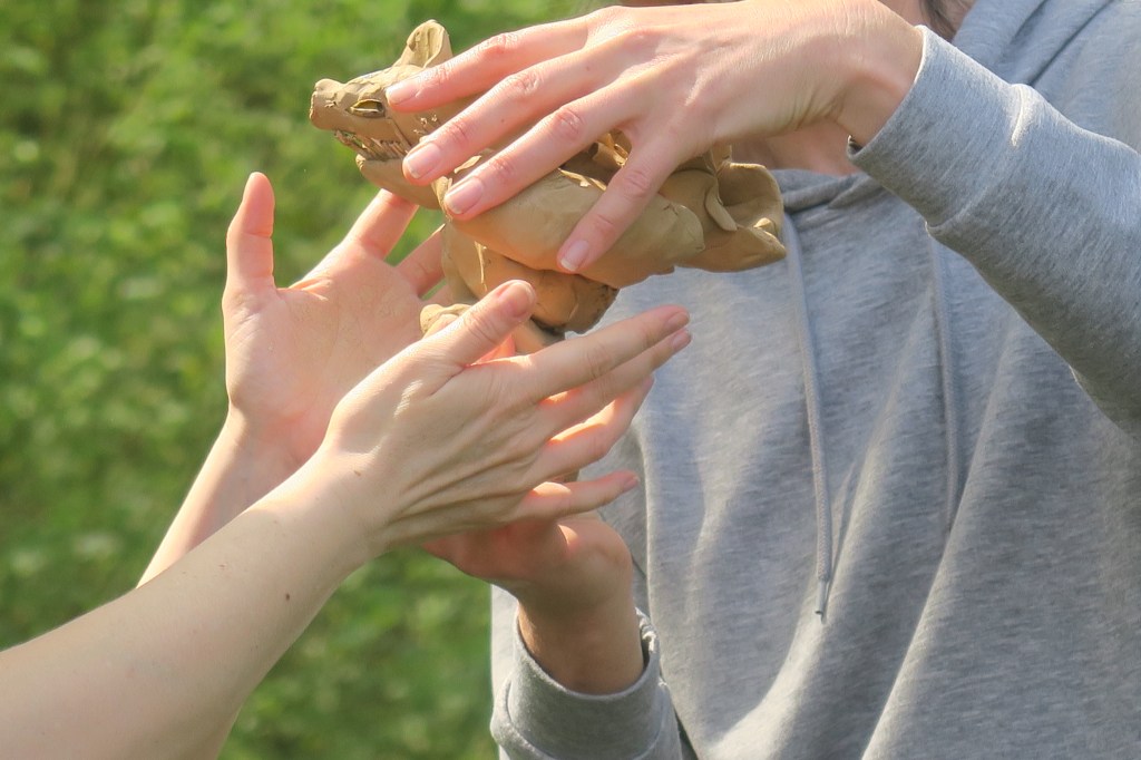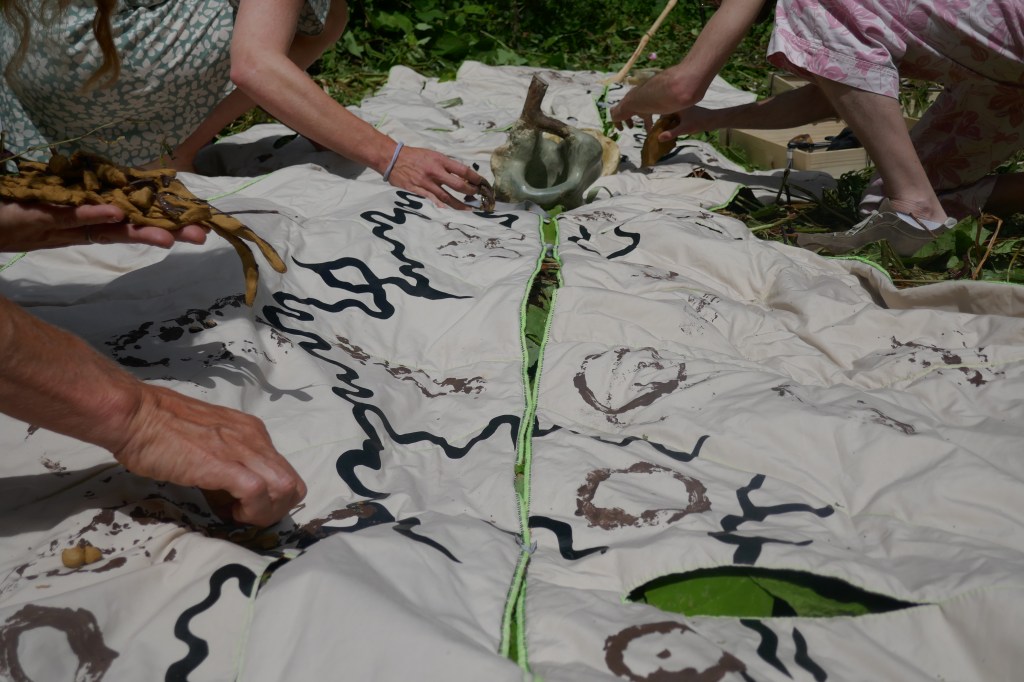 How does the stone, the nettles, the trees, the wind, the mud sense our presence? How do we want to be remembered by the river? To remember is to restore knowing. To recall forgotten stories. To collect and mend. To renew our relationship with the river. To restore our capacity to connect. To reclaim ourselves as part of the river. We start braiding our stories collectively with nettles and clay, exploring forms of orality, “histories of listening”, songs and intangible archiving. We become river vessels and weave an agreement of stewardship for the Szenne River.